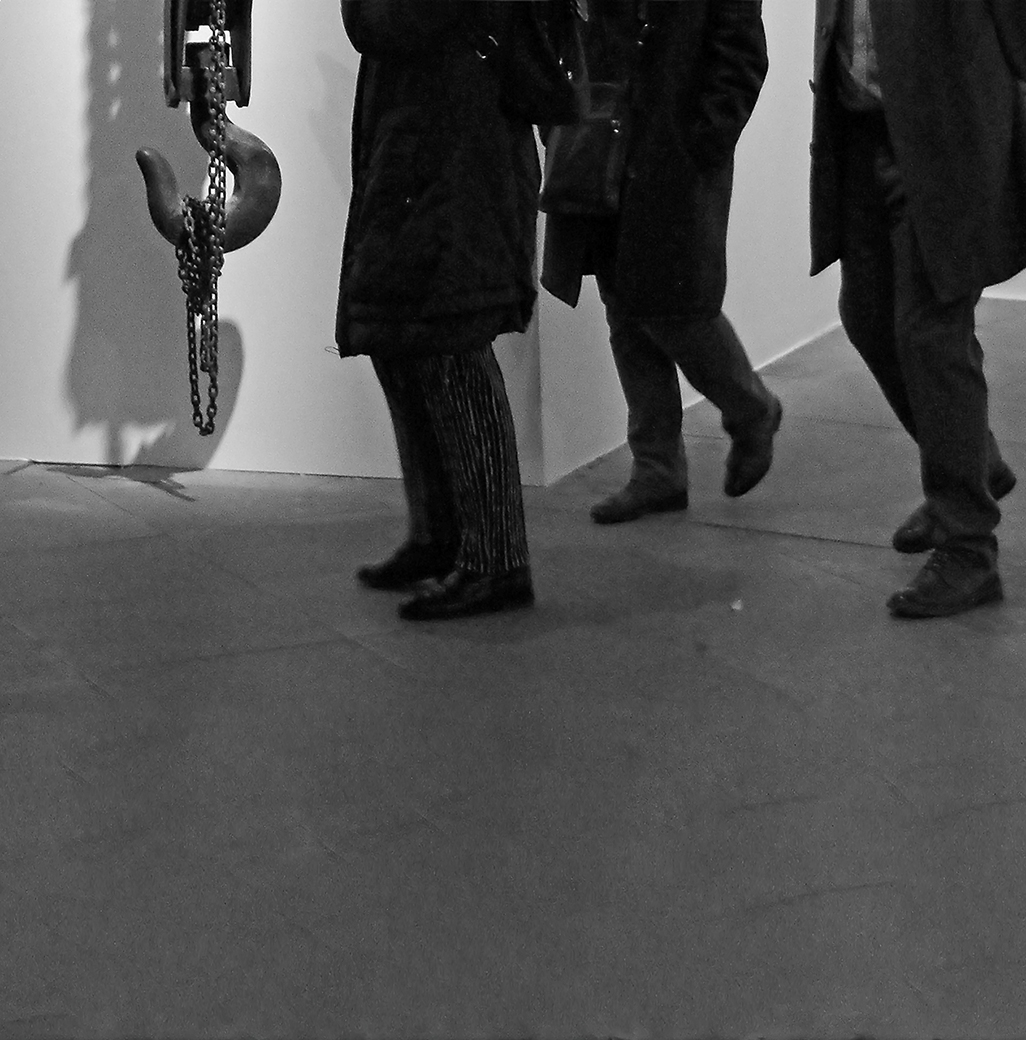 Tres personas, sobrepasada la hora de cierre, se acercaban a la salida sin abandonar el centro, parándose junto al viejo polipasto que se usó para hacer reparaciones en el depósito décadas atrás.
