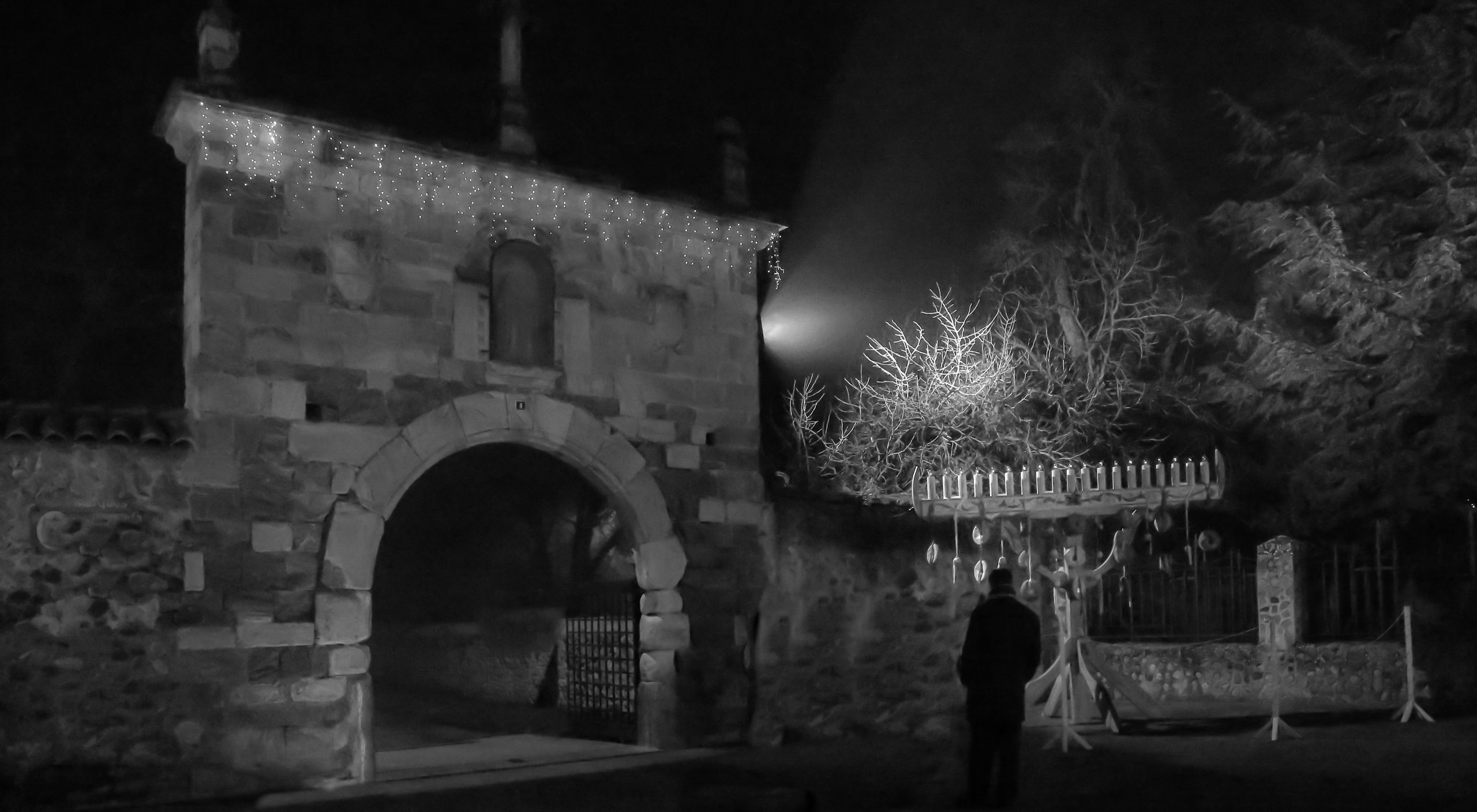Las campanas de la iglesia repicaron por última vez, resonando con un eco profundo entre las callejuelas del pueblo. La niebla densa y casi tangible, envolvía todo, desde las luces del árbol navideño leonés hasta las sombras que se deslizaban lentamente entre los feligreses que abandonaban la misa del gallo.